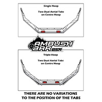 Dual twin aerial mounts come standard on Single and Triple Hoop and are positioned on the left and right of the centre hoop. (See picture in listing for location).